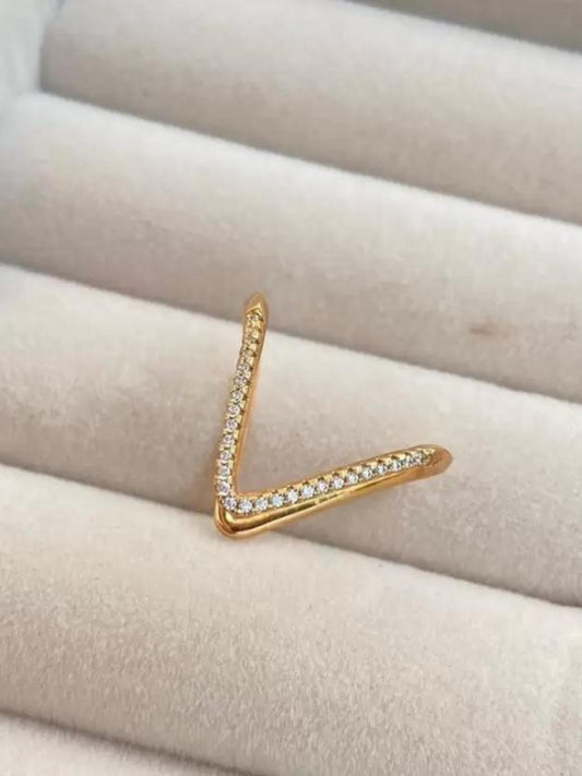 Stone-Studded Stackable Reversible V Ring (Gold Color)